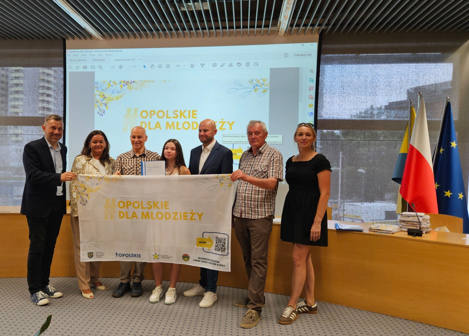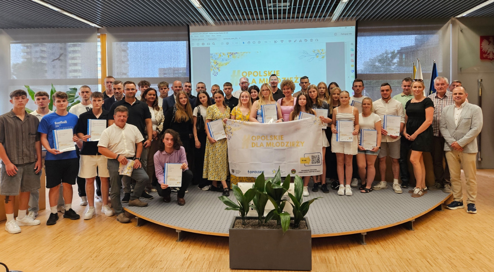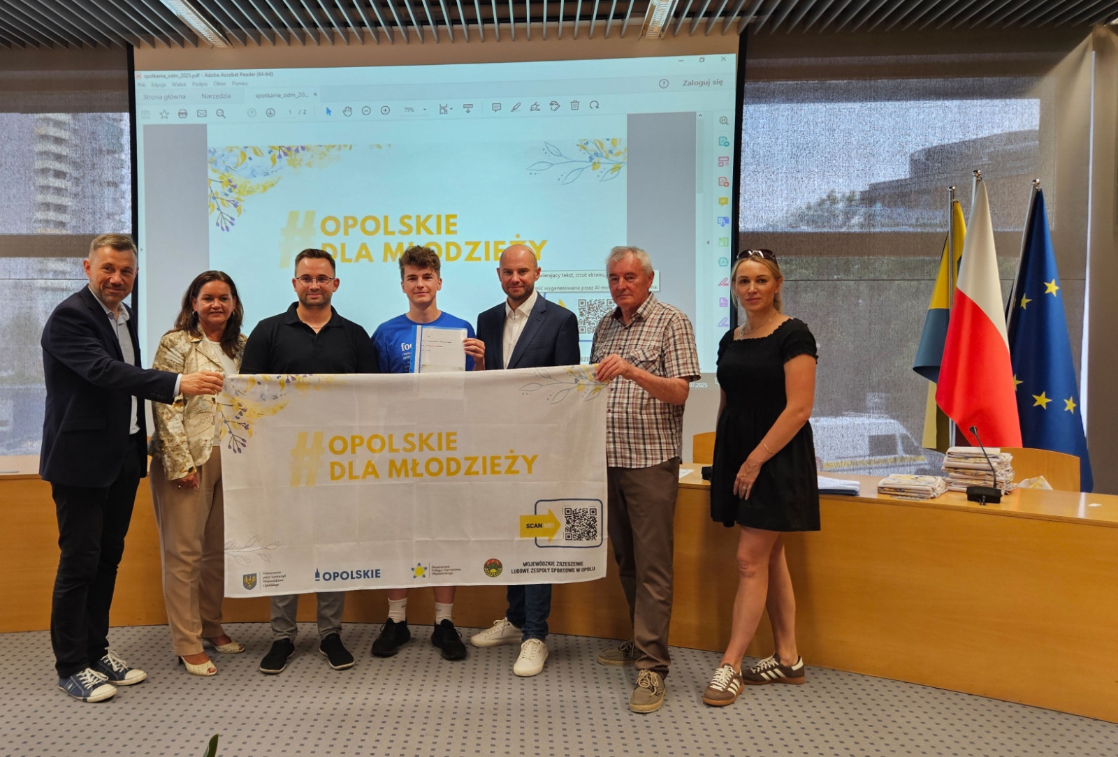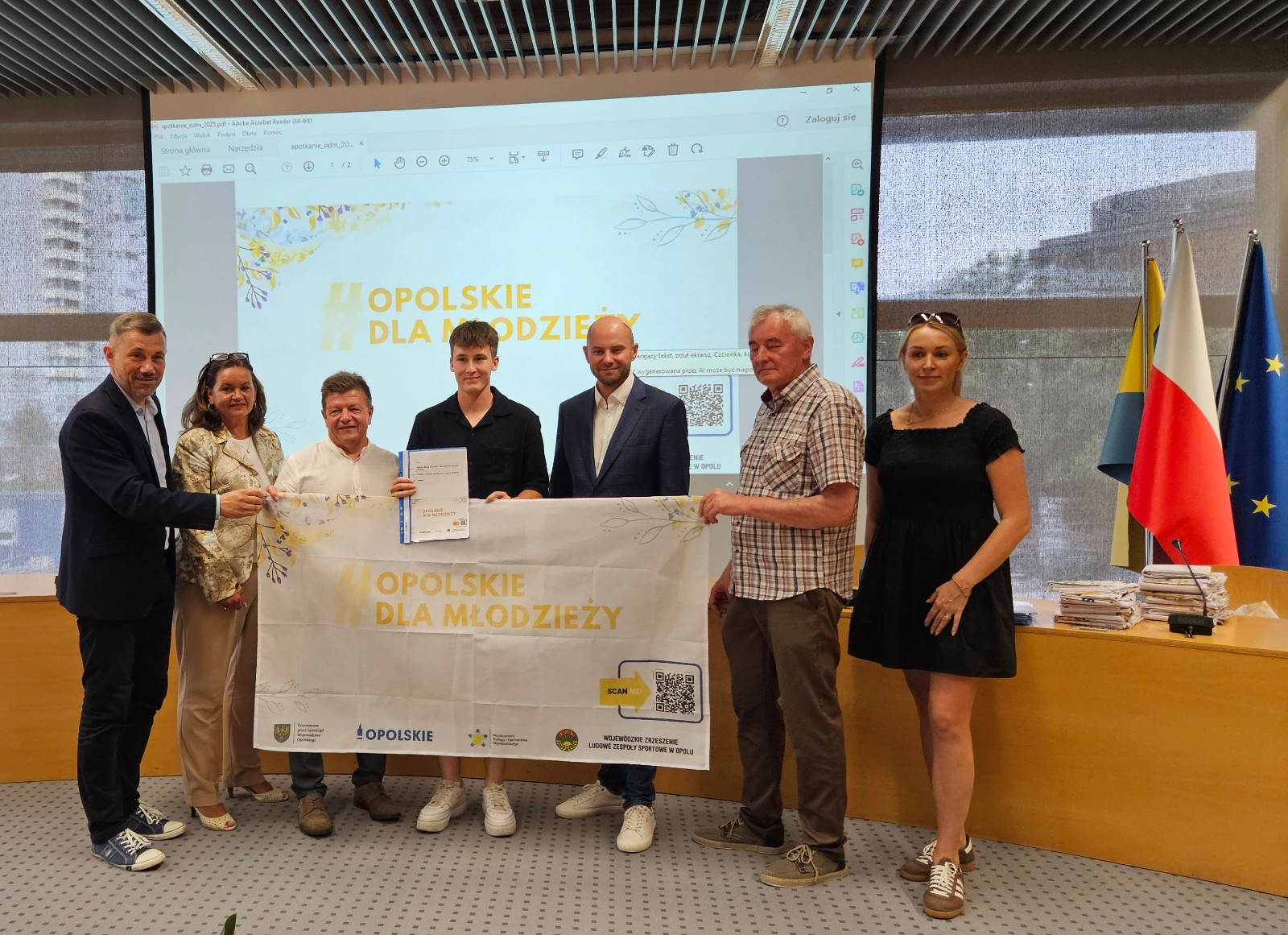 15 lipca w Sali Orła Białego Urzędu Marszałkowskiego w Opolu odbyło się spotkanie grup inicjatywnych programu Opolskie Dla Młodzieży ze Zbigniewem Kubalańcą Wicemarszałkiem Województwa Opolskiego. Ponadto w spotkaniu uczestniczyli; Barbara Kamińska Dyrektor Departamentu Dialogu i Partnerstwa Obywatelskiego. Roman Stęporowski i Bartosz Ostrowski Dyrektor i Wicedyrektor Departamentu Sportu i Turystyki. Wojewódzkie Zrzeszenie LZS w Opolu reprezentowali Gerard Halama – Prezes i Anna Kocińska Scholz - Wiceprezes i Jan Siekaniec - Sekretarz. Mimo pory wakacyjnej dopisała także frekwencja beneficjentów programu – na spotkanie przybyło 20 spośród 29 grup inicjatywnych. Po otwierającym spotkanie przywitaniu zgromadzonych Marszałek Zbigniew Kubalańca omówił założenia projektu Opolskie Dla Młodzieży i pogratulował zgromadzonym faktu, że stali się beneficjentami projektu w kolejnej już 4 jego edycji w roku 2025. Kolejnym punktem spotkania było uroczyste przekazanie porozumień na realizację inicjatyw wraz z materiałami promocyjnymi. Reprezentanci poszczególnych grup inicjatywnych mieli okazję odebrać przygotowane dla nich dokumenty bezpośrednio z rąk Pana Marszałka co zastało „uwiecznione” na wspólnym zdjęciu.